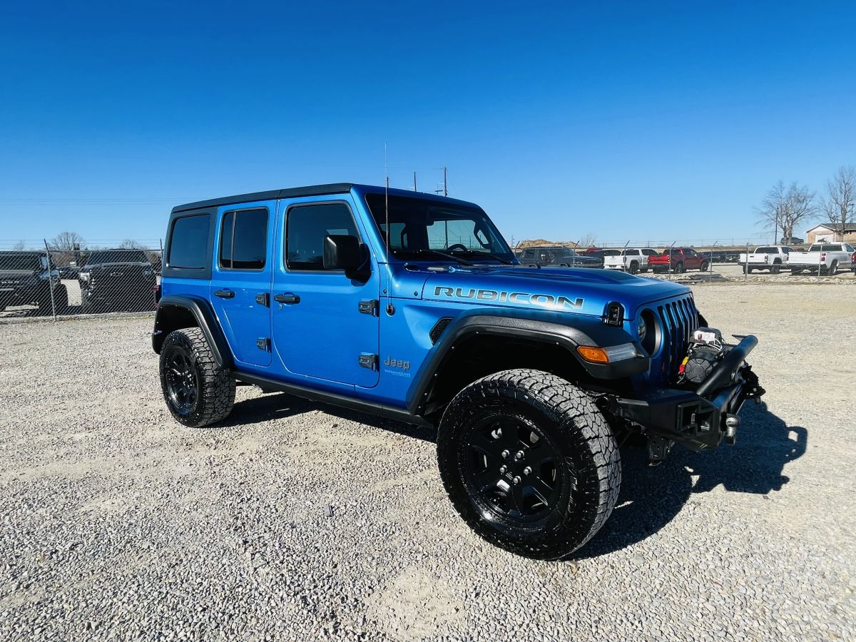CLEAR TITLE. NEVER DAMAGED. This is a new dealership trade in unit. Rubicon 4XE package with 2.0L Turbo, 8-Speed Automatic, 4 wheel drive, Navigation, Heated seats, Heated steering wheel, Hard top, Aftermarket front bumper with winch, LED Lights, 18" wheels, 35" Tires. Very clean and well maintained vehicle. For more info call Sales at 573-785-7515 Ext. 1| Run & Drive | |